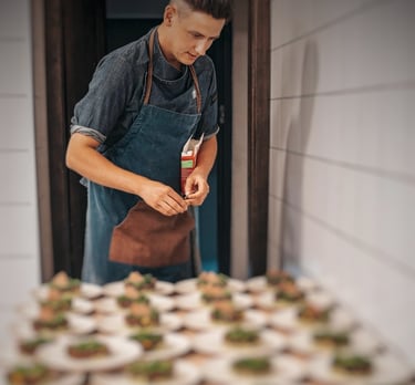 Esu Jonas, Jūsų asmeninis šefas. Jau daugelį metų tiekiu gurmaniškus ir kūrybiškus patiekalus įvairioms šventėms ir renginiams – nuo įmonių vakarėlių iki šeimos susibūrimų. Mano tikslas – padėti Jums kurti nepamirštamas akimirkas, teikiant aukščiausios kokybės maisto tiekimo paslaugas.